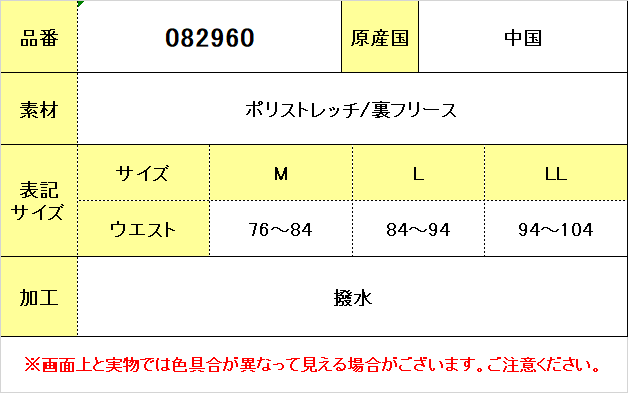 082960 ポリストレッチ撥水 防雨裏フリース ZIPジョガー クライミングパンツ